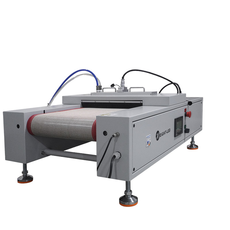 機(jī)傳送帶及UVLED開始工作,當(dāng)后端傳感器感應(yīng)到產(chǎn)品后,傳送帶及UVLED停止