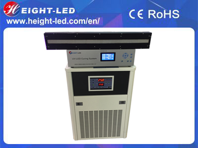 This is a high quality UVLED surface light sourc curing system, the system includes the controller, UVLED irradiation head and cable. UVLED head with imported high-intensity UV LED integrated UV spectral wavelength of 365nm, 385nm, 395nm, 405nm, the use of forced air cooling, the effective curing area of 560*20mm, support for external signal input and trigger, can be equipped with semi-automatic or fully automated production line and printing machine.