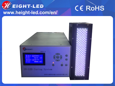 SZUV-II-FS20040-NH is a high-performance UVLED  curing system, the system includes the controller, UVLED irradiation head and cable. UVLED head with imported high-intensity UV LED integrated UV spectral wavelength of 365nm, 385nm, 395nm, 405nm, the use of forced air cooling, the effective curing area of 200X40mm, support for external signal input and trigger, can be equipped with semi-automatic or fully automated production line .