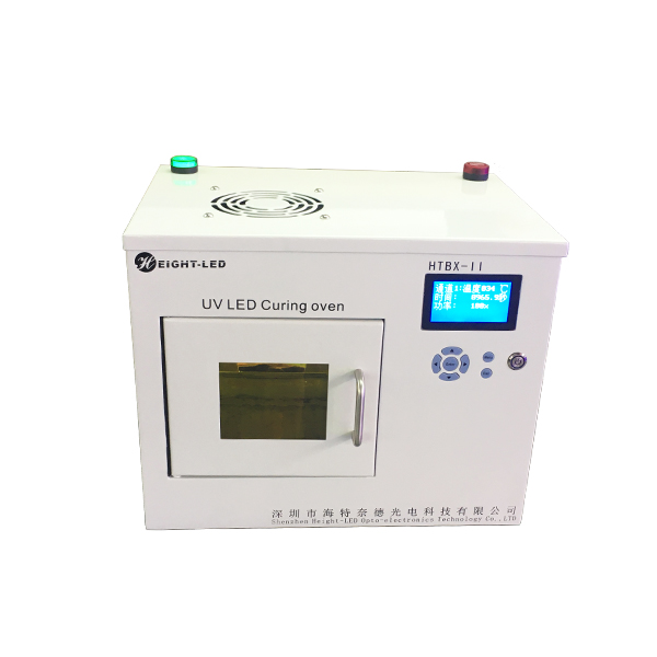 The UVLED curing oven is a high-performance UVLED surface light source curing system, which mainly includes an oven, UVLED irradiation head, and connecting wires. The UVLED irradiation head of this system is integrated with imported high-intensity ultraviolet LEDs. The UV spectrum wavelength is 395nm. It uses forced air cooling. The effective curing area is 150X150mm. It supports external signal input and triggering. It can be equipped with semi-automatic or fully automatic production lines.