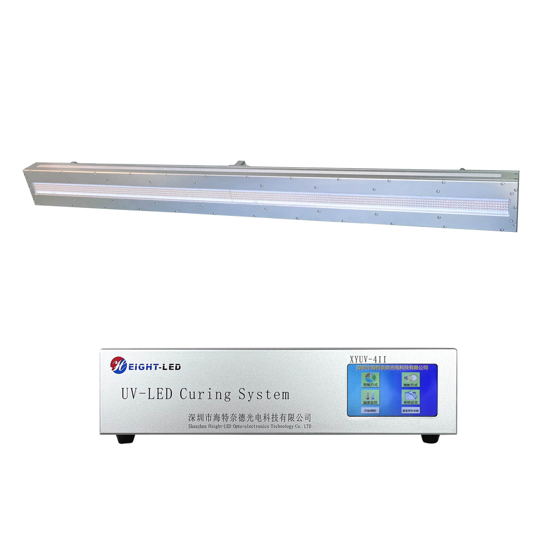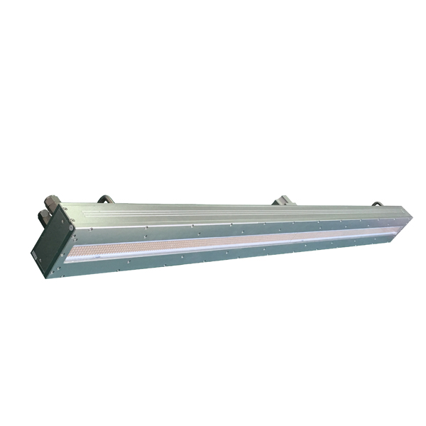 此UVLED照射頭采用進(jìn)口高強(qiáng)度紫外LED集成,UV光譜波長為395nm,采用強(qiáng)制水冷散熱,有效固化面積為1120X20mm,支持外部信號(hào)輸入和觸發(fā)。